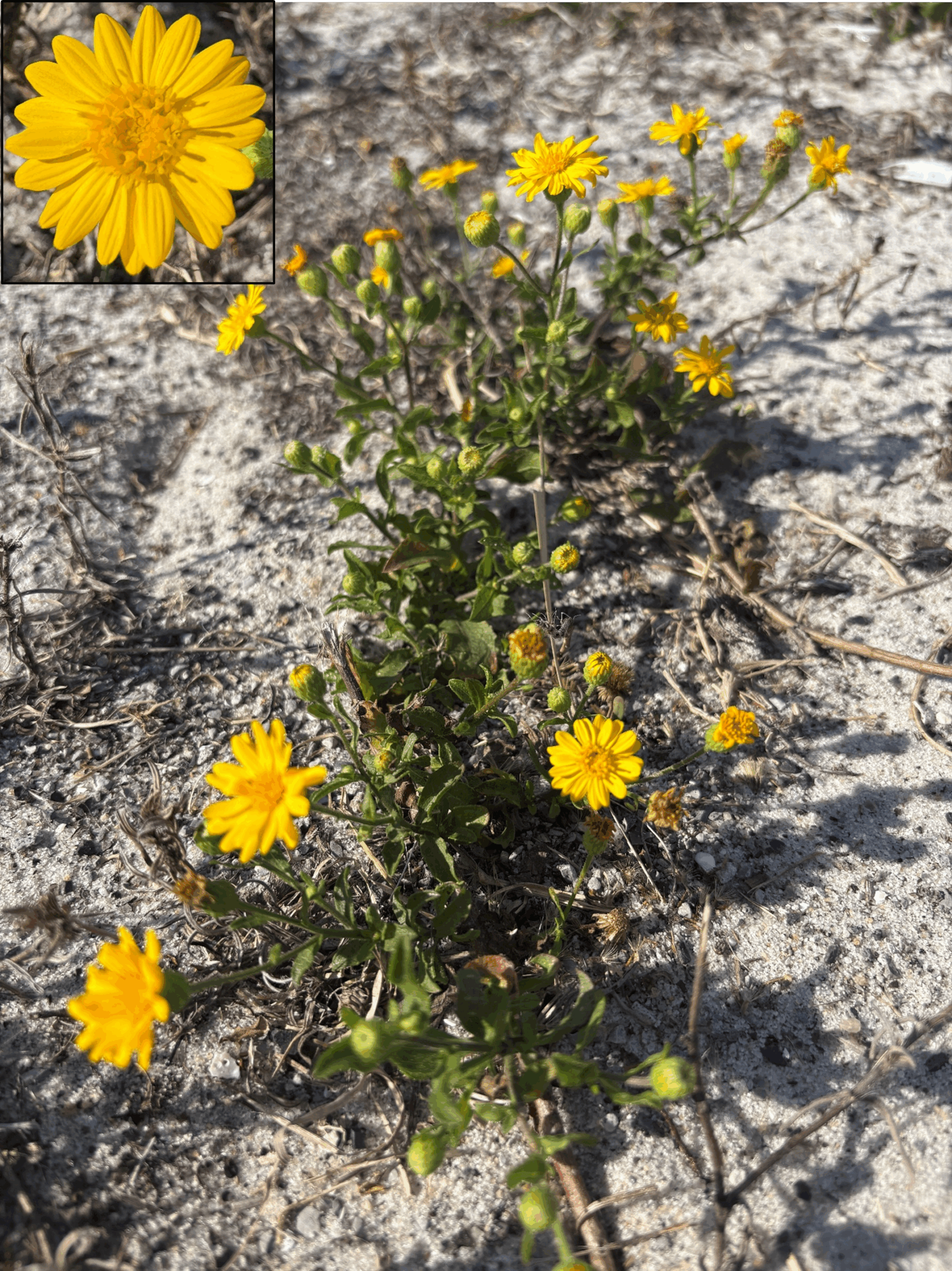 You can see Woody Goldenrod blooming in the dunes on the beach, spoil islands, or up on the trails in Crestview.