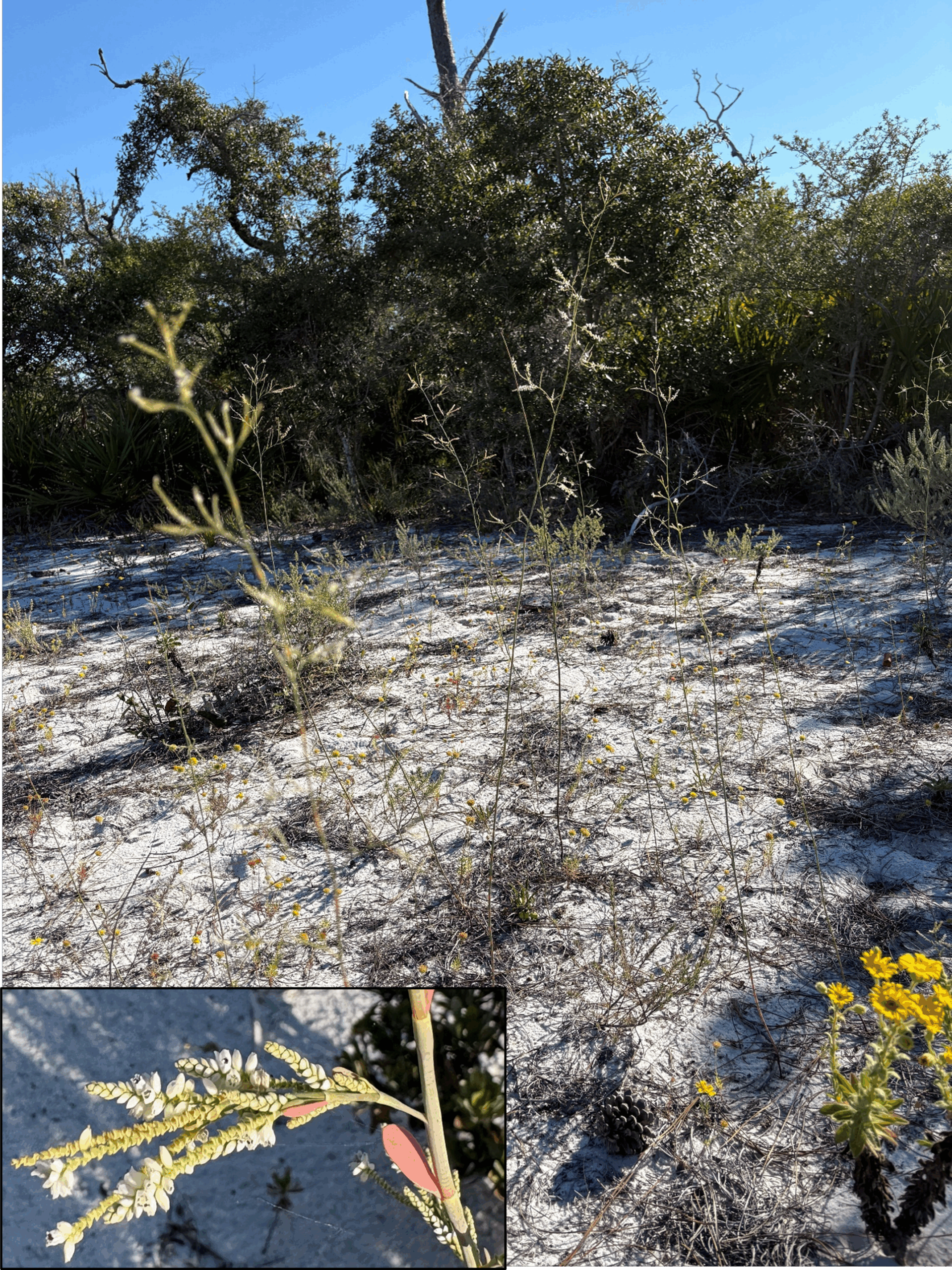 You can see Largeleaf Jointweed blooming in the dunes on the beach or on the spoil islands.