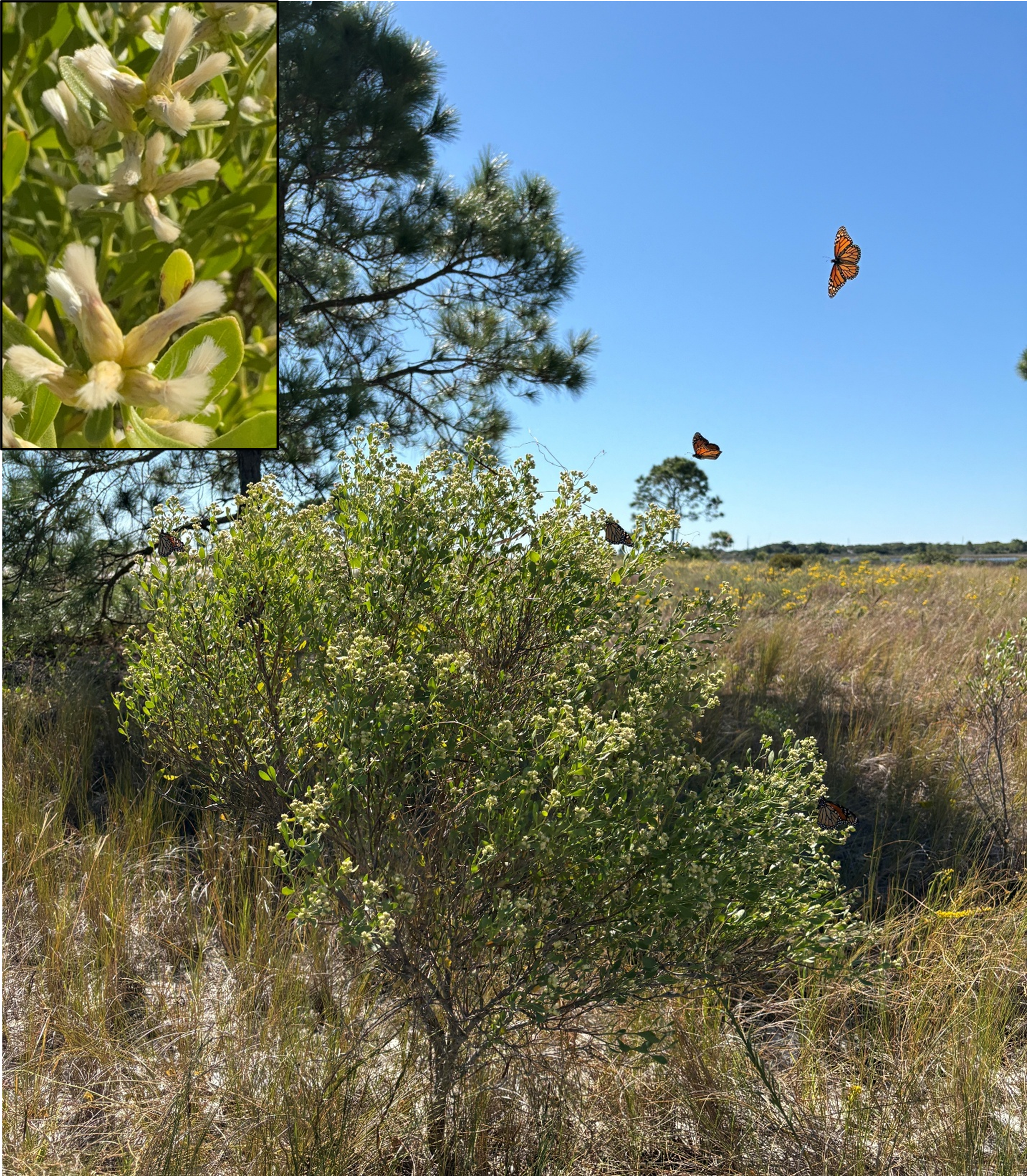 You can see Saltbush blooming on the beach, spoil islands, or in scrub habitat.